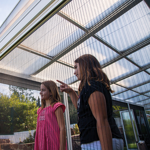 In Standardausführung Glaspaket 4/18/4/18/4 mit Wärmedurchgangskoeffizient Ug = 0,5 W/(m2K).